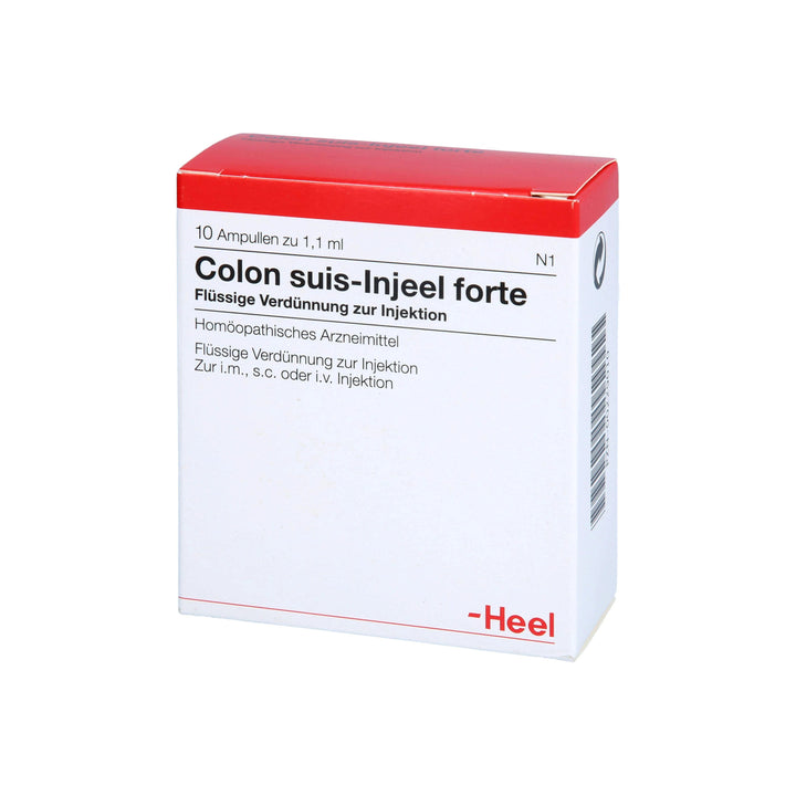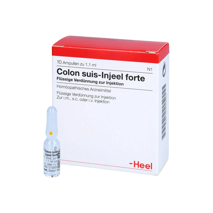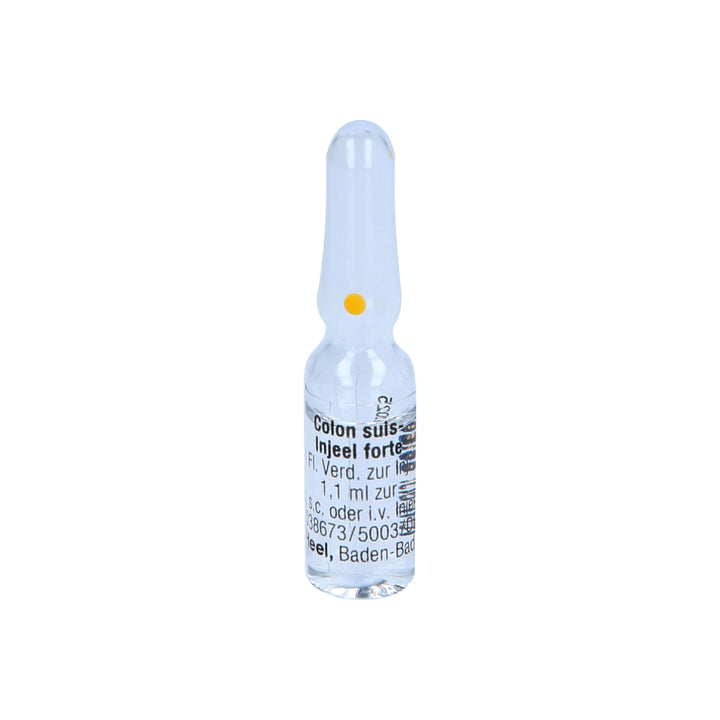 Similar action to Coecum suis-Injeel but more powerful. Also for enterospasms (flexura lienalis, sigmoid); indicated as intermediate remedy or for administration at the start of treatment for all serious toxin levels; intestinal stasis, intestinal colic, intestinal tenesmus, colitis mucosa et ulcerosa, insomnia.