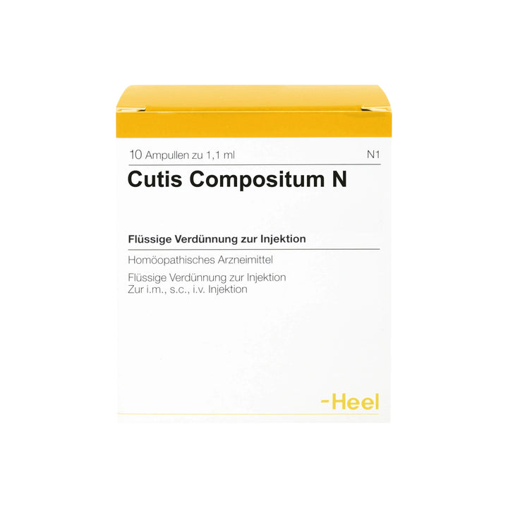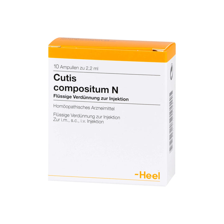 Solution: 2.2 ml cont.: Cutis suis D8, Hepar suis D10, Splen suis D10, Placenta suis D10, Glandula suprarenalis suis D10, Funiculus umbilicalis suis D10, Thuja occidentalis D8, Galium aparine D6, Selenium D10, Thallium sulfuricum D13, Ignatia D6, Sulfur D10, Cortisonum aceticum D28, Urtica urens D4, Acidum phosphoricum D6, Calcium fluoratum D13, Mercurius solubilis Hahnemanni D13, Aesculus hippocastanum D6 Ichthyolum D28, Sanguinarinum nitricum D6, Ledum palustre D4, Arctium lappa D6, Acidum formicicum D198, Pyrogenium-Nosode D198, Acidum alpha-ketoglutaricum D10, Acidum fumaricum D10, Natrium diethyloxalaceticum D10 22 _l each.