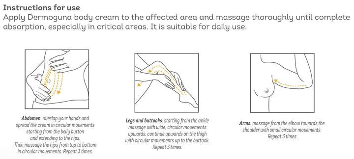 Spread Dermo guna body cream on the affected area and massage carefully until completely absorbed, paying particular attention to the critical areas. It is suitable for daily use.