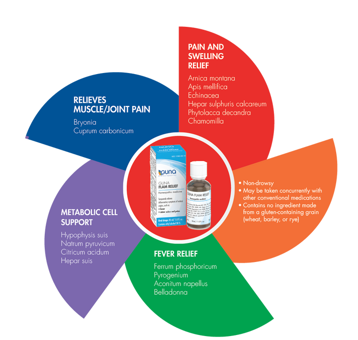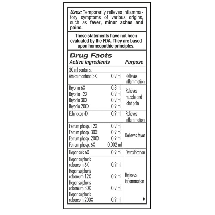 | Aconitum napellus 6X, 12X, 30X, 200X | Relieves inflammation and fever |