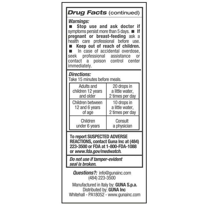 Adults and children over 12 years: 20 drops in a little water, 2 times per day. |