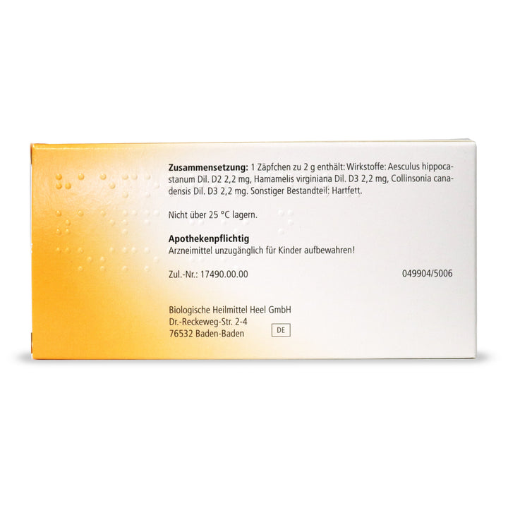 Composition: 1 suppository of 2 g contains: Active ingredients: Aesculus hippoca-