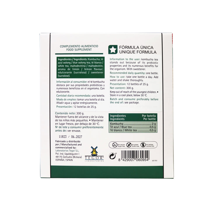 Kombucha complex is a drinkable food supplement, easy to prepare and carry, which thanks to its probiotic action becomes an ideal drink to change habits, facilitating the incorporation of liquids into the body while contributing to the proper functioning of the digestive system, the immune system and skin.