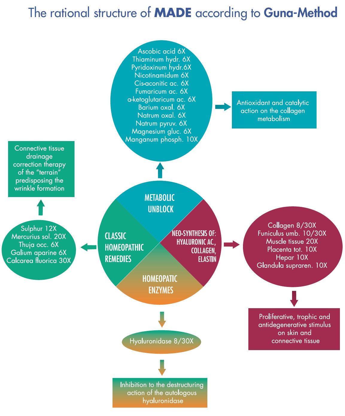 - Hyaluronidase low dose: which regulates modulates the activity of autologous hyaluronidase, thus helping keep the extra-cellular matrix compact.