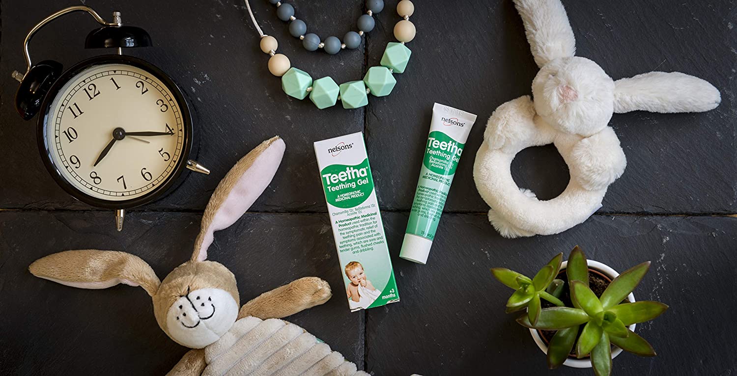 A homeopathic medicinal product used within the homeopathic tradition for the symptomatic relief of teething pain and the symptoms associated with teething, which are sore and tender gums, flushed cheeks, and dribbling.