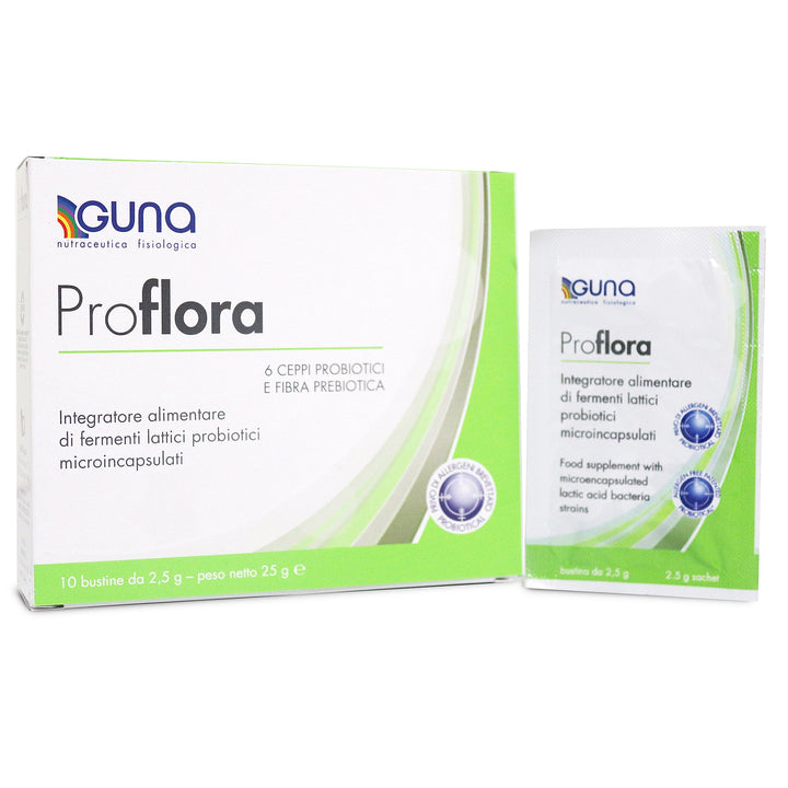 Thanks to the use of an innovative patented production process, the 6 probiotic microorganisms contained in Proflora are presented in a microencapsulated and gastro-protected form. The use of this technology significantly improves the survival capacity of all probiotic microorganisms during gastroduodenal transit, thus allowing a large number of live and viable microorganisms to reach the intestine.