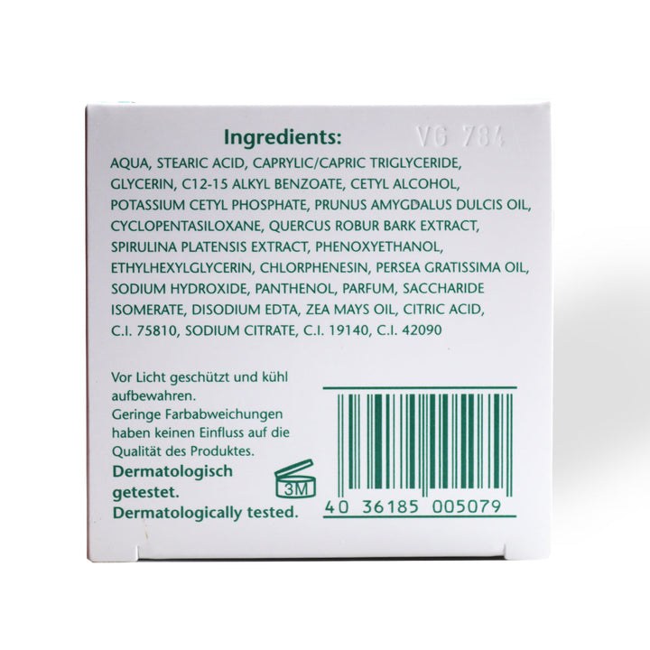 By this rich moisture mask optimum skin moisture can be achieved and stressed skin gets balanced again. Spriulina microalgae and oak bark extract activate the vital forces of the skin and dispense moisture. Avocado oil, sweet almond oil and maize germ oil provide more suppleness and necessary lubrication.