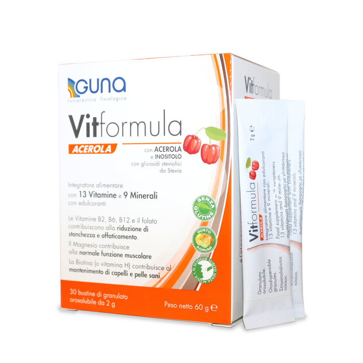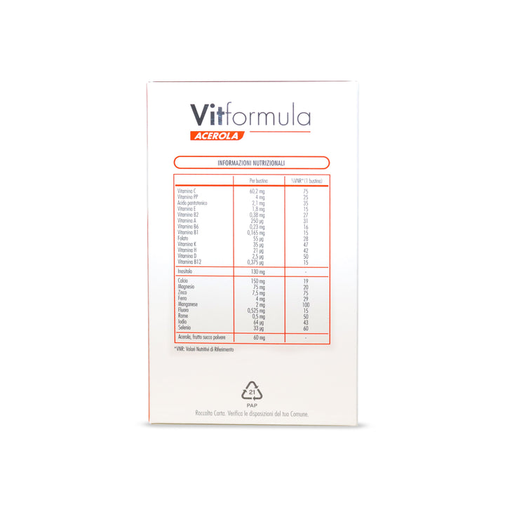 Food supplement con with Acerola Fruit Juice, Inositol, 13 Vitamins and 9 Minerals